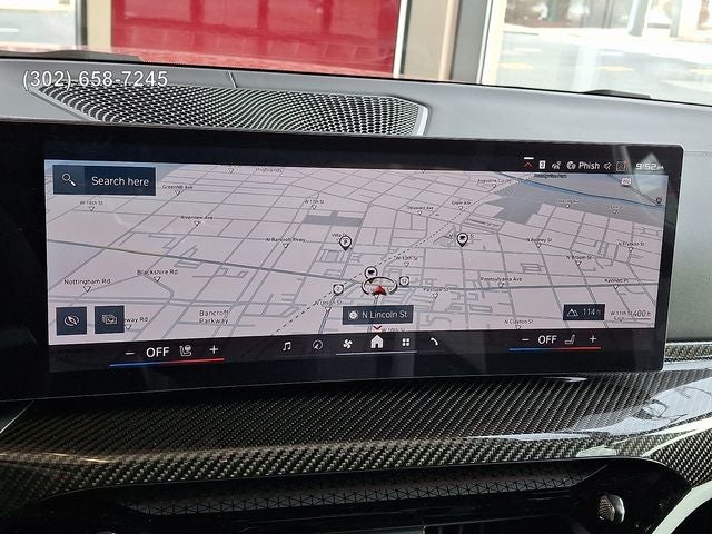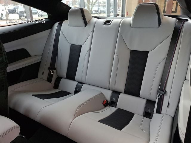 Connected Package Pro Limited Term, Executive Package (Galvanic Controls, Live Cockpit Pro with Navigation, and Remote Engine Start), Parking Assistance Package (Parking Assistant Plus and Parking View with 3D View (Surround View)), 16 Speakers, 4-Wheel Disc Brakes, ABS brakes, Adaptive suspension, Air Conditioning, Alloy wheels, AM/FM radio: SiriusXM with 360L, Apple CarPlay and Android Auto Compatibility, Audio memory, Auto High-beam Headlights, Auto-dimming door mirrors, Auto-dimming Rear-View mirror, Automatic temperature control, BMW Assist ECall, BMW TeleServices, Brake assist, Bumpers: body-color, Carbon Fiber Trim, Compass, ConnectedDrive Services, Delay-off headlights, Driver door bin, Driver vanity mirror, Dual front impact airbags, Dual front side impact airbags, Electronic Stability Control, Emergency communication system: BMW Assist eCall, Exterior Parking Camera Rear, Four wheel independent suspension, Front anti-roll bar, Front Bucket Seats, Front Center Armrest, Front dual zone A/C, Front reading lights, Fully automatic headlights, Garage door transmitter, Harman/Kardon Surround Sound System, harman/kardon® Speakers, Heated door mirrors, Heated Front Seats, Heated front seats, Heated steering wheel, HVAC memory, Illuminated entry, Knee airbag, Leather Shift Knob, Leather steering wheel, Low tire pressure warning, Lumbar Support, M Alcantara Steering Wheel, M Carbon Bucket Seats, M Compound Brakes with Red Calipers, M Drive Professional, M Sport Seats, Memory seat, Navigation, Navigation System, Occupant sensing airbag, Outside temperature display, Overhead airbag, Overhead console, Panic alarm, Passenger door bin, Passenger vanity mirror, Personal ESIM 5G, Power door mirrors, Power driver seat, Power Front Seats, Power passenger seat, Power steering, Power windows, Radio data system, Radio: AM/FM Audio System, Rain sensing wipers, Rear anti-roll bar, Rear reading lights, Rear seat center armrest, Rear window defroster, Remote keyless entry, Security system, SiriusXM with 360L and 1 Year Trial Subscription, Speed control, Speed-sensing steering, Speed-Sensitive Wipers, Split folding rear seat, Spoiler, Sport steering wheel, Steering wheel mounted audio controls, Tachometer, Telescoping steering wheel, Tilt steering wheel, Traction control, Trip computer, Turn signal indicator mirrors, Variably intermittent wipers, Wheels: 19 x 9.5 Front/20 x 10.5 Rear (style 826M), and Widescreen Display.