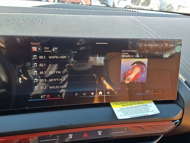 Premium Package (BMW Curved Display with HUD, Distance Control (ACC) with Steering Assistant, Driving Assistance Plus, Heated Steering Wheel, Interior Camera, Panoramic Moonroof, Parking Assistant Plus, Parking View with 3D View (Surround View), Premium Content 1, Remote Engine Start, and Travel and Comfort System), 8-Speed Automatic, 12 Speakers, 4-Wheel Disc Brakes, ABS brakes, Air Conditioning, Alloy wheels, AM/FM Radio, AM/FM radio: SiriusXM, Apple CarPlay and Android Auto Compatibility, Auto High-beam Headlights, Auto-dimming door mirrors, Auto-dimming Rear-View mirror, Automatic temperature control, BMW Assist ECall, BMW TeleServices, Brake assist, Bumpers: body-color, Delay-off headlights, Driver door bin, Driver vanity mirror, Dual front impact airbags, Dual front side impact airbags, Electronic Stability Control, Emergency communication system: BMW Assist eCall, Exterior Parking Camera Rear, Four wheel independent suspension, Front anti-roll bar, Front Bucket Seats, Front Center Armrest, Front reading lights, Front Ventilated Seats, Fully automatic headlights, Garage door transmitter, Genuine wood console insert, Harman/Kardon Surround Sound System, Heated door mirrors, Heated Front Seats, Heated front seats, Hi-Fi Sound System, Illuminated entry, Knee airbag, Low tire pressure warning, Lumbar Support, Memory seat, Navigation, Navigation system: BMW Maps Navigation, Occupant sensing airbag, Outside temperature display, Overhead airbag, Overhead console, Panic alarm, Passenger door bin, Passenger vanity mirror, Personal ESIM 5G, Power door mirrors, Power driver seat, Power Front Seats, Power Liftgate, Power moonroof: Panoramic, Power passenger seat, Power steering, Power windows, Radio data system, Rain sensing wipers, Rear anti-roll bar, Rear Climate Control Console, Rear reading lights, Rear seat center armrest, Rear window defroster, Rear window wiper, Remote keyless entry, Security system, SiriusXM with 360L and 1 Year Trial Subscription, Speed control, Speed-Sensitive Wipers, Split folding rear seat, Spoiler, Sport Seats, Sport steering wheel, Steering wheel mounted audio controls, Tachometer, Telescoping steering wheel, Tilt steering wheel, Traction control, Trailer Hitch, Trip computer, Turn signal indicator mirrors, Variably intermittent wipers, Veganza Perforated and Quilted Upholstery, Wheels: 19 x 8.5 Aero Midnight Grey Bicolor, and Wireless Device Charging. 8-Speed Automatic. 27/33 City/Highway MPG