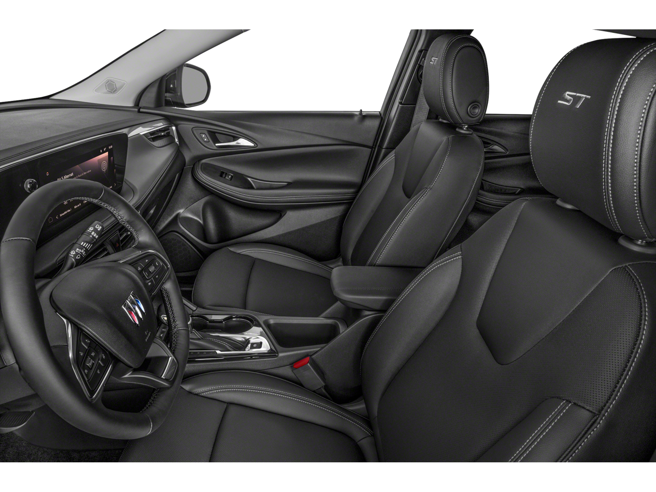 3.17 Final Drive Axle Ratio, 4-Way Manual Passenger Seat Adjuster, 4-Wheel Disc Brakes, 6-Way Manual Driver Seat Adjuster, 7 Speakers, ABS brakes, Air Conditioning, Alloy wheels, AM/FM radio: SiriusXM, Auto High-beam Headlights, Automatic temperature control, Brake assist, Bumpers: body-color, Compass, Delay-off headlights, Driver door bin, Driver vanity mirror, Dual front impact airbags, Dual front side impact airbags, Electronic Stability Control, Emergency communication system: OnStar and Buick connected services capable, Enhanced Performance 7-Speaker System with Amplifier, Front anti-roll bar, Front Bucket Seats, Front Center Armrest, Front reading lights, Front wheel independent suspension, Fully automatic headlights, Heated door mirrors, Illuminated entry, Knee airbag, Leatherette Seat Trim, Low tire pressure warning, Occupant sensing airbag, Outside temperature display, Overhead airbag, Overhead console, Panic alarm, Passenger door bin, Passenger vanity mirror, Power door mirrors, Power steering, Power windows, Radio data system, Radio: AM/FM Audio System, Rear reading lights, Rear side impact airbag, Rear window defroster, Rear window wiper, Remote keyless entry, Ride and Handling Suspension, Security system, SiriusXM Trial Subscription, Speed control, Speed-sensing steering, Split folding rear seat, Spoiler, Sport steering wheel, Steering wheel mounted audio controls, Tachometer, Telescoping steering wheel, Tilt steering wheel, Traction control, Trip computer, Variably intermittent wipers, Wheels: 18 Gloss Black Aluminum, and Wireless Apple CarPlay/Wireless Android Auto. 26/28 City/Highway MPG